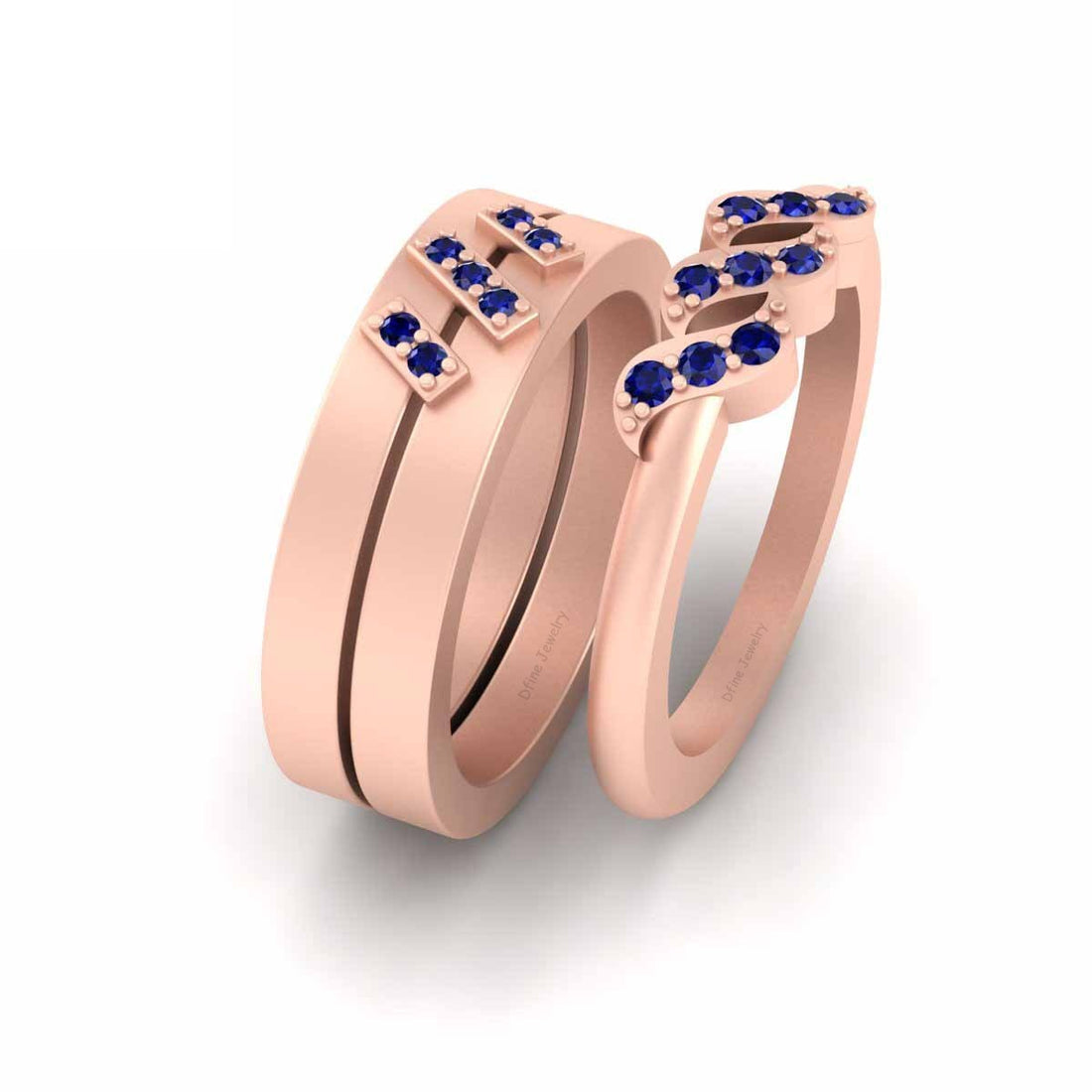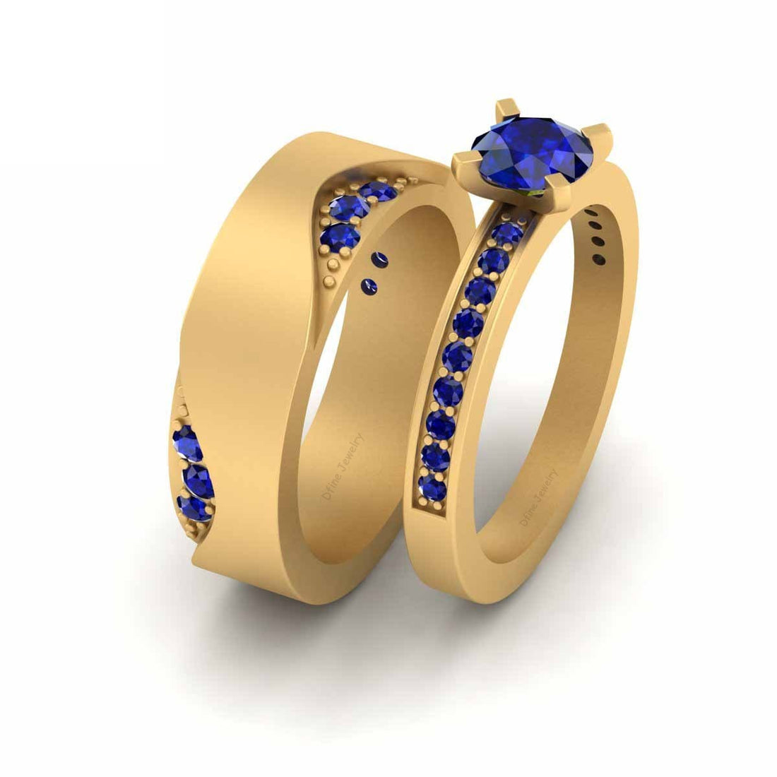Matching Sapphire Wedding Ring Set His and Her Couple Gold