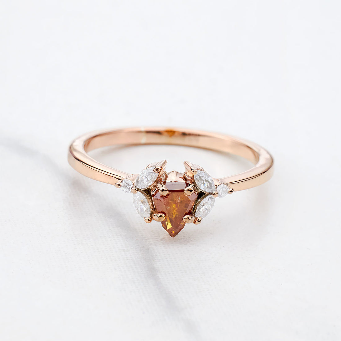 Shield Cut Orange Natural Rustic Diamond and Moissanite Ring