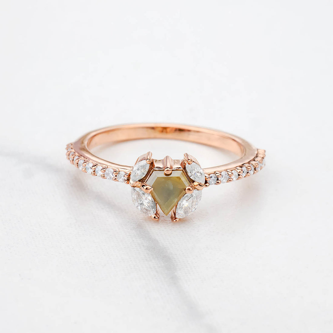 Pentagon Cut Fancy Colored Natural Rustic Diamond Promise Ring