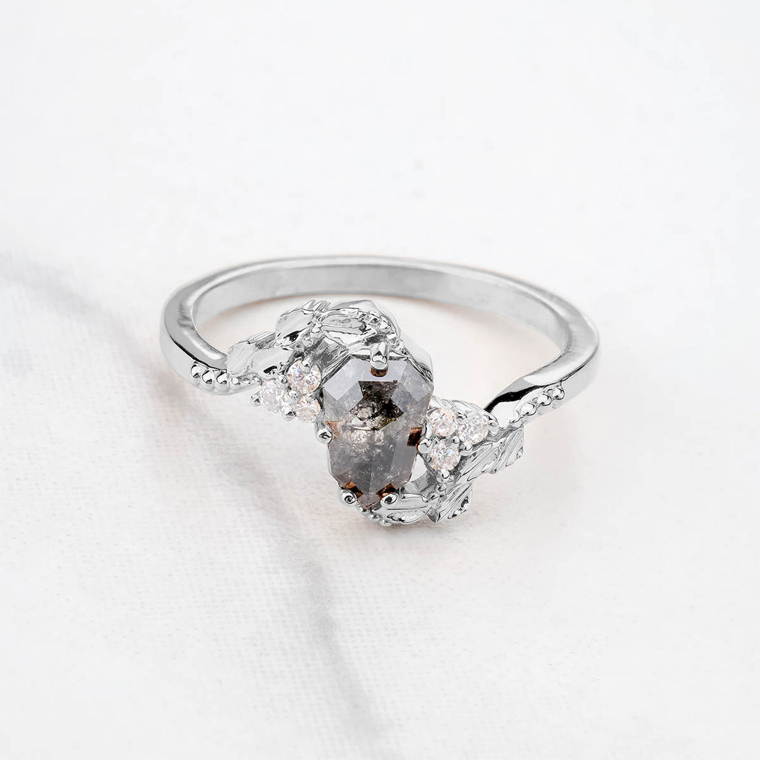 Pentagon Salt and Pepper Diamond Engagement Ring Moissanite