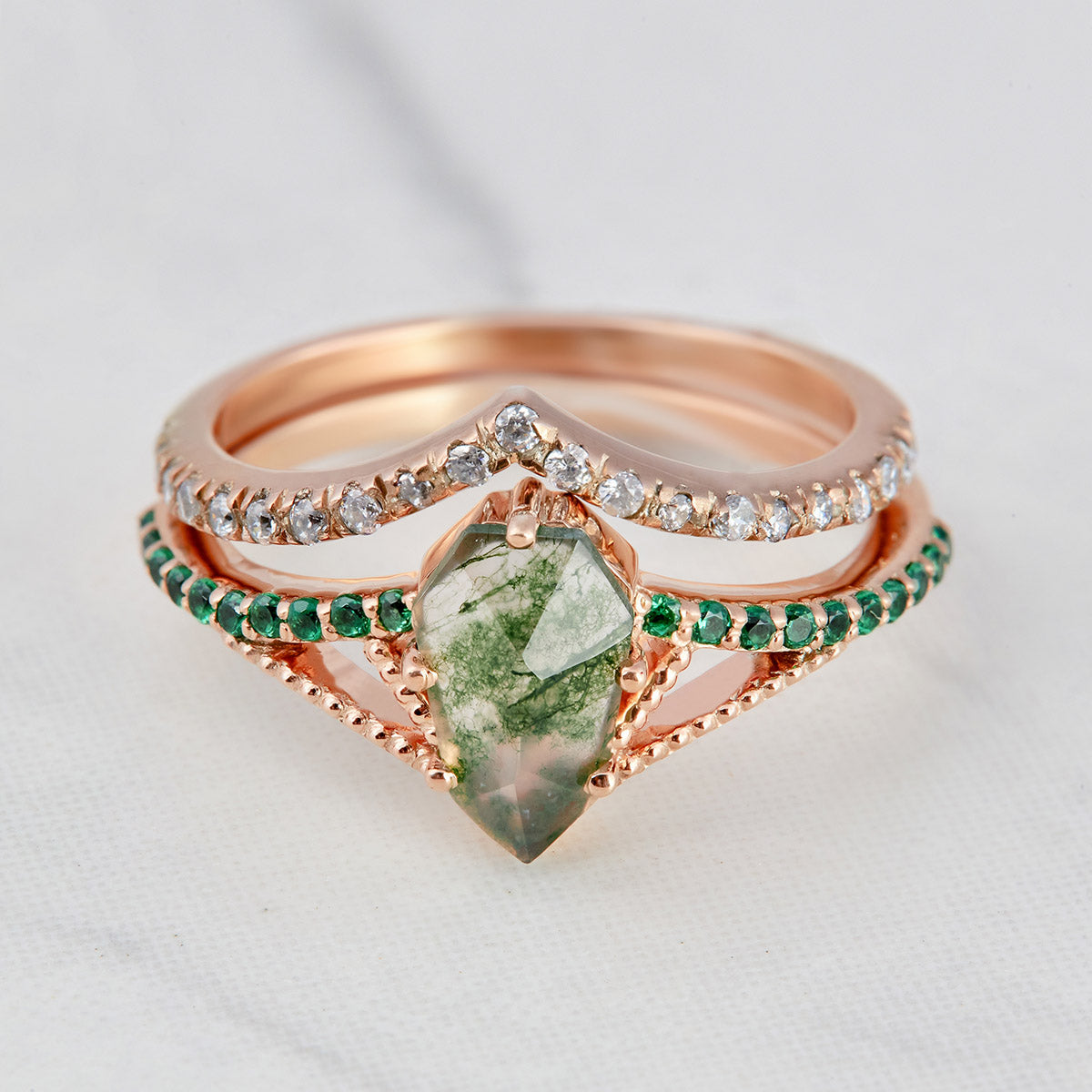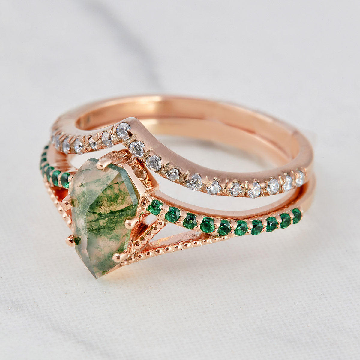 1.0CT Moss Agate Engagement Ring Set Moss Agate Ring Set