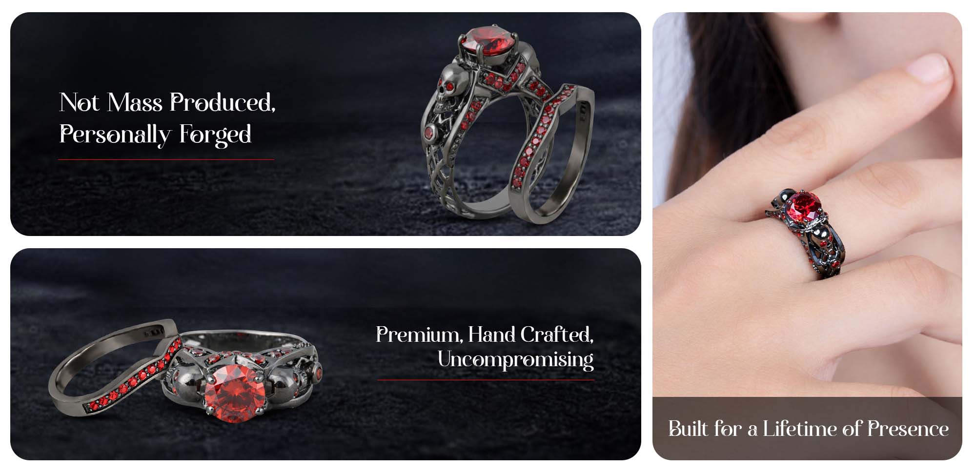 Dark Vampire Queen Skull Engagement Ring Set Bridal Ring Sets