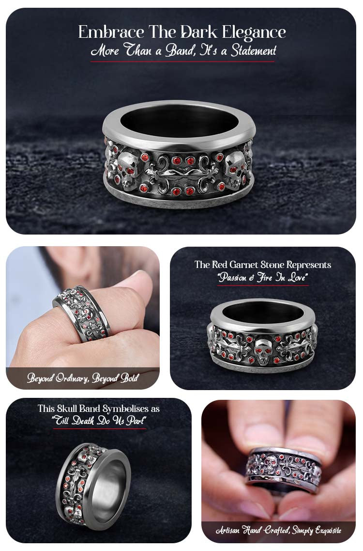 Learn moreGarnet Skull Wedding Band Fleur De Lis Skull Band Badass Biker Ring