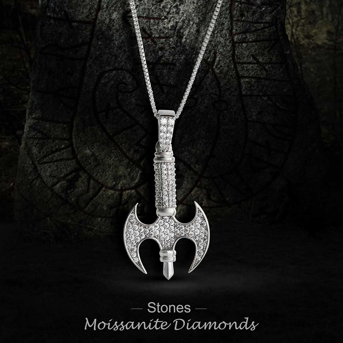 Learn moreIced Out Viking Axe Necklace Pendant Moissanite Sterling Silver Hip Hop Warrior Jewelry