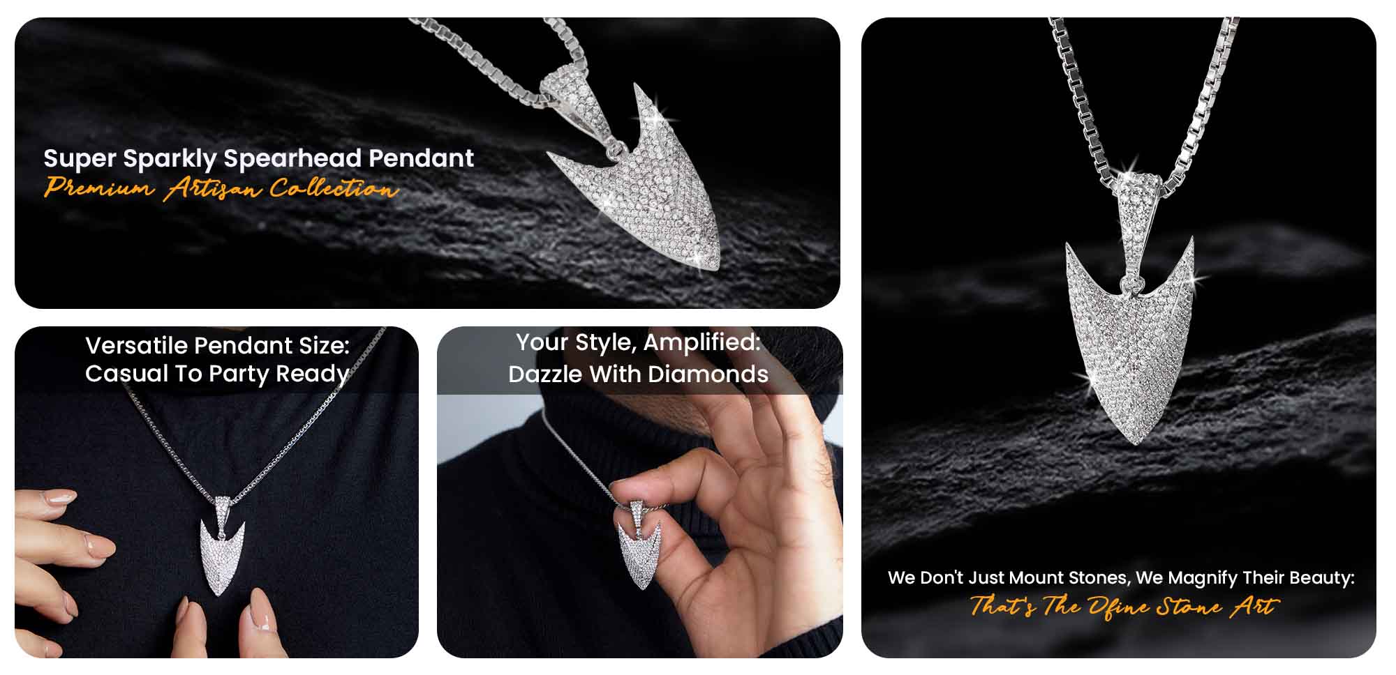 Learn moreMoissanite Iced Out Spearhead Pendant Necklace Viking Jewelry