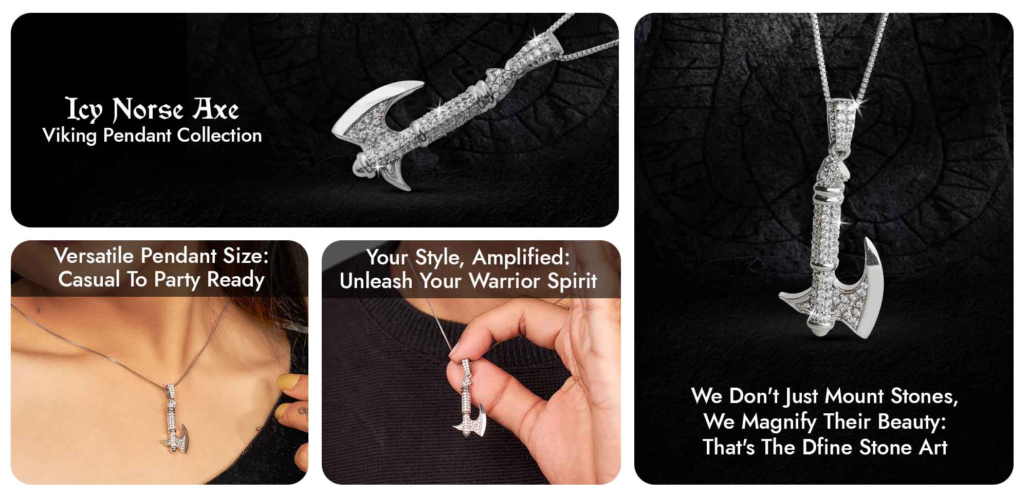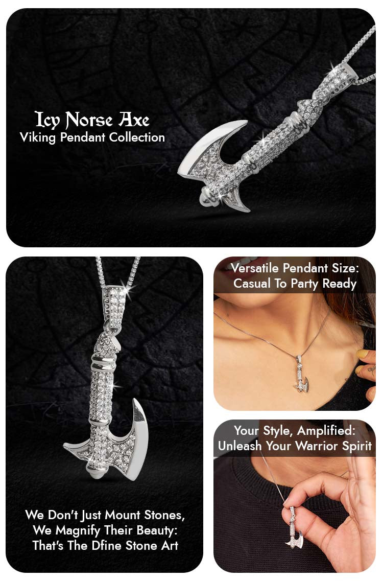 Learn moreMoissanite Viking Axe Pendant Necklace Icy Norse Iced Out Hip Hop Jewelry Silver