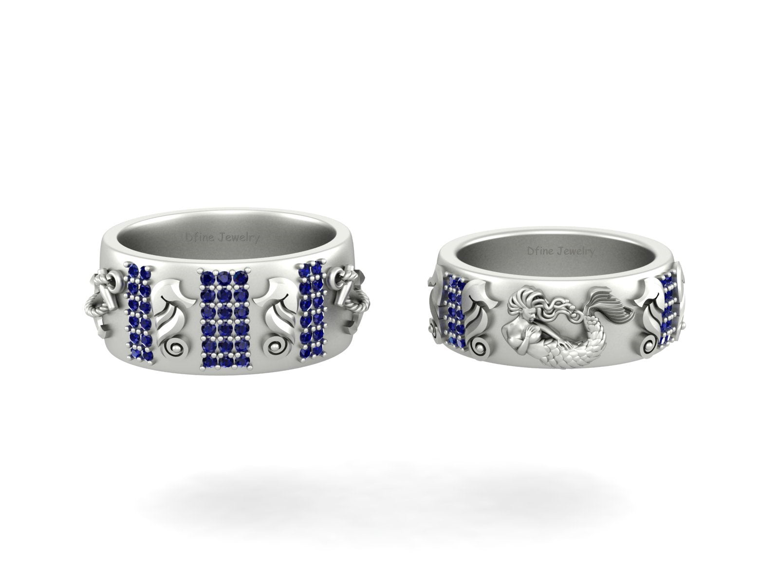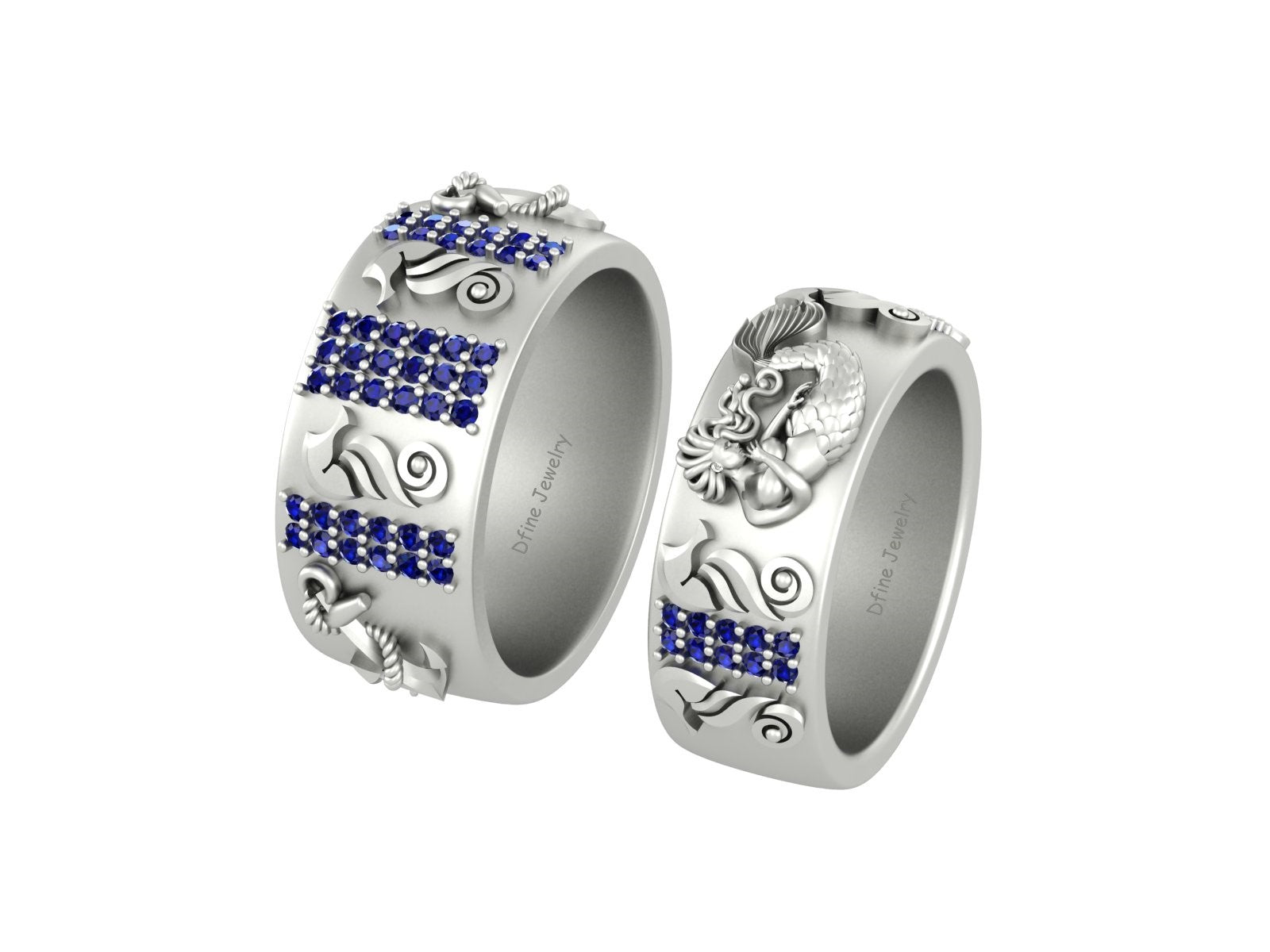 Nautical Anchor Matching Couple Bands Solid 10k White Gold