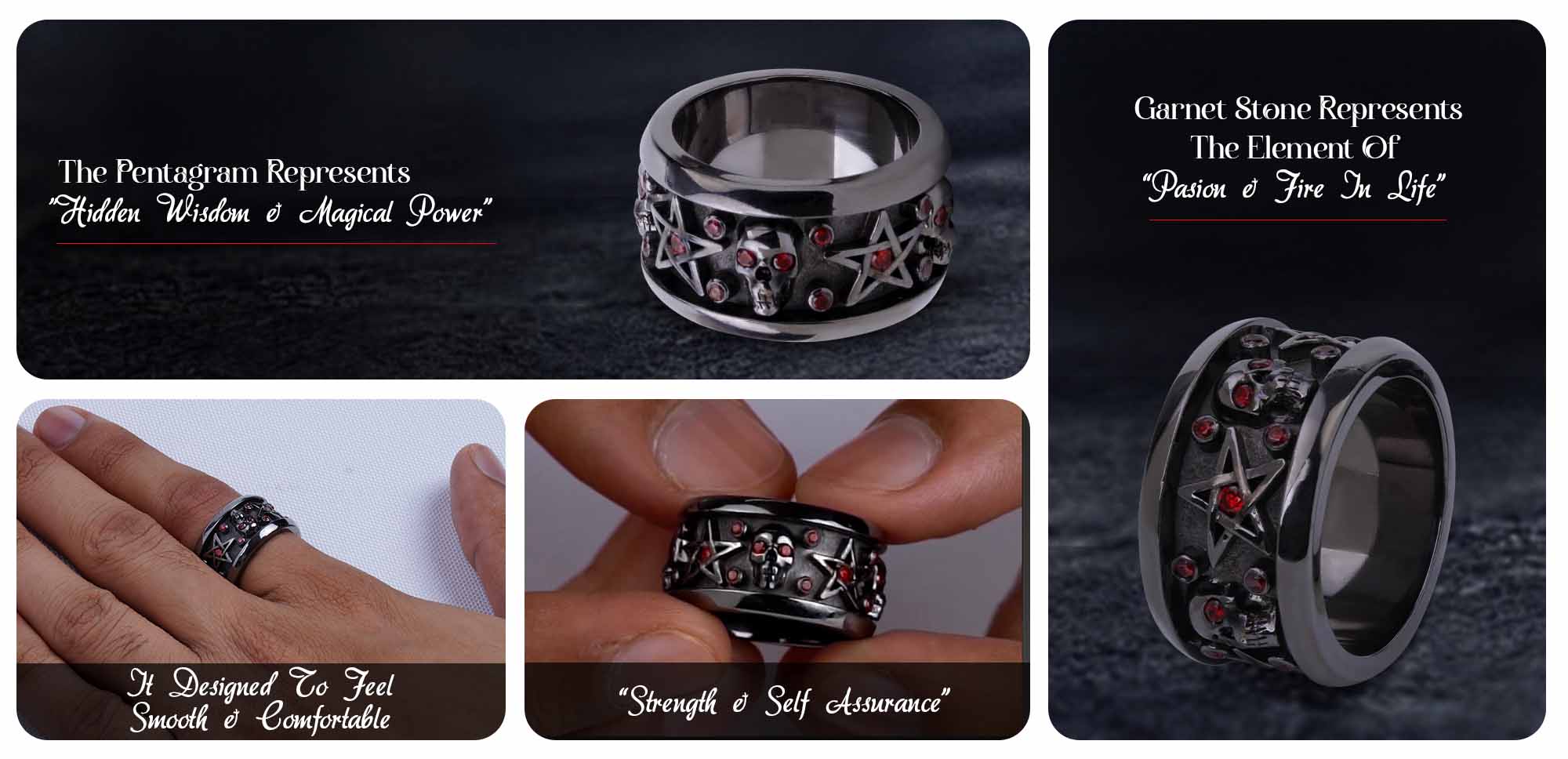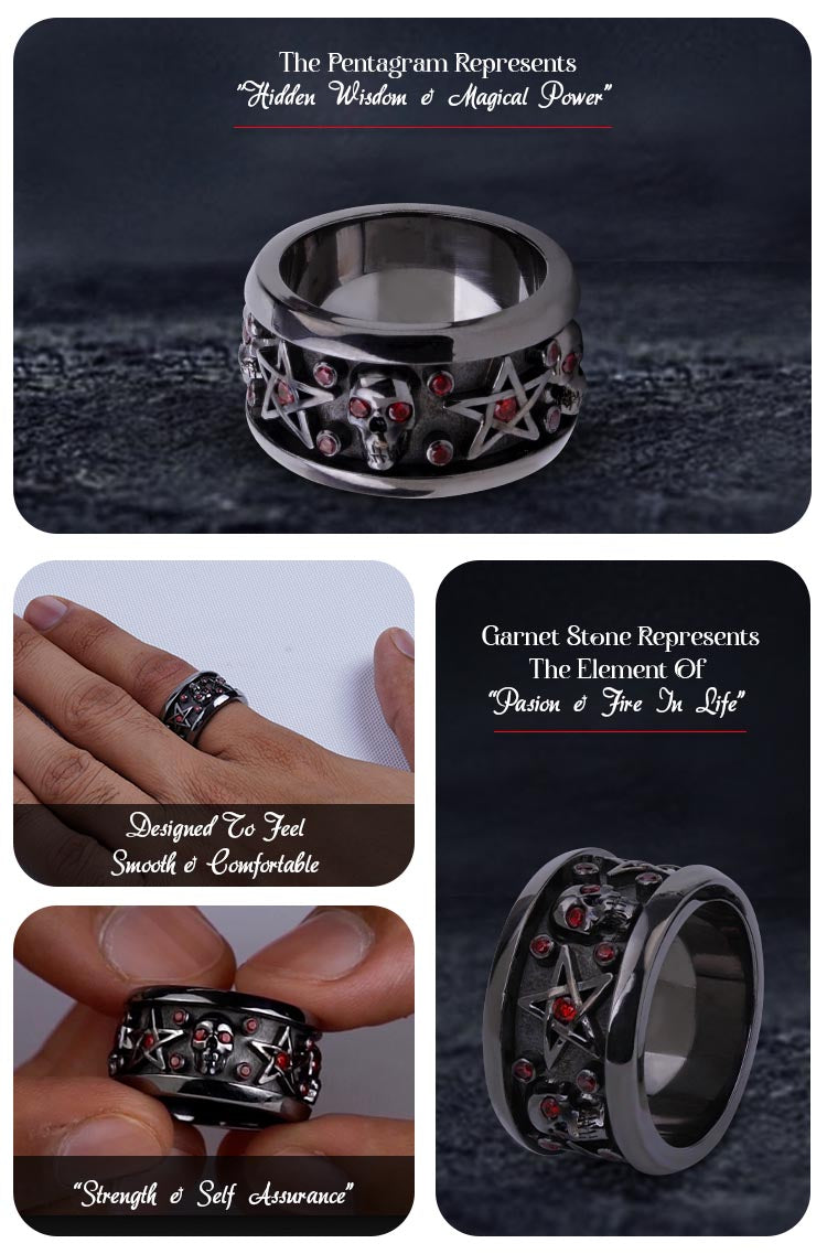 Learn morePentagram Skull Wedding Band for Men Gothic Biker Jewelry