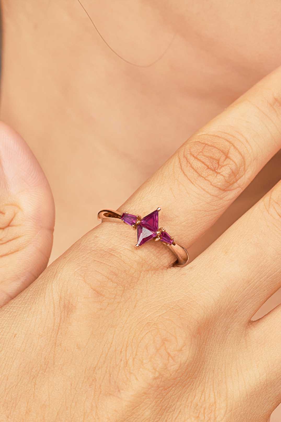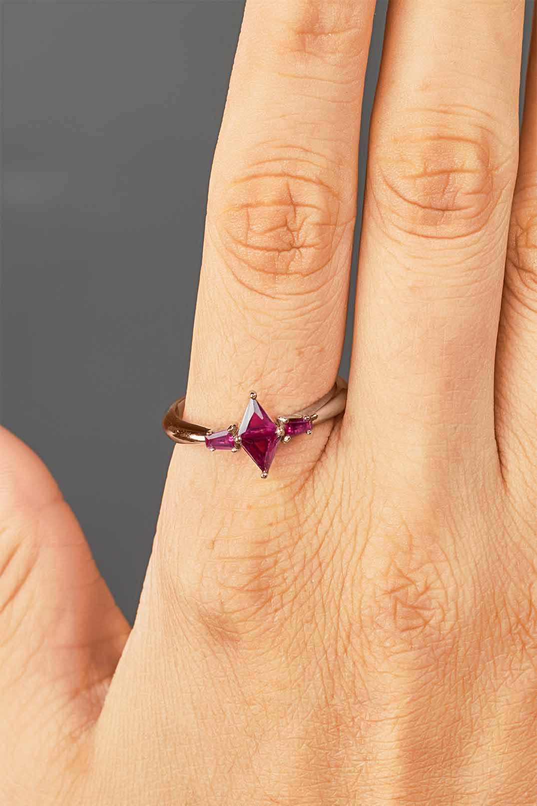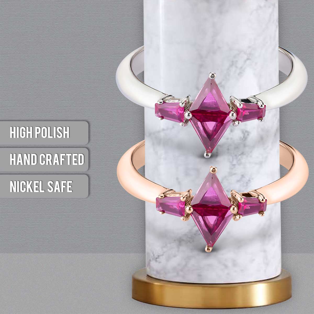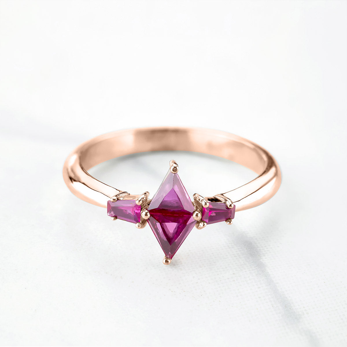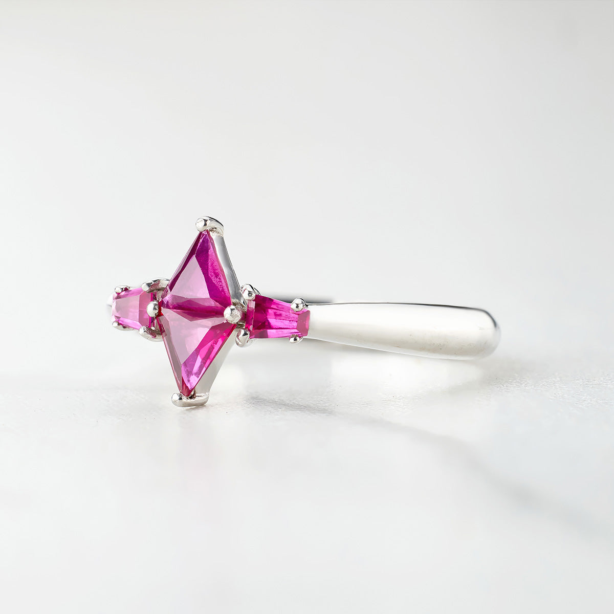 Learn morePink Ruby Promise Ring July Birthstone Triangle Baguette Shape