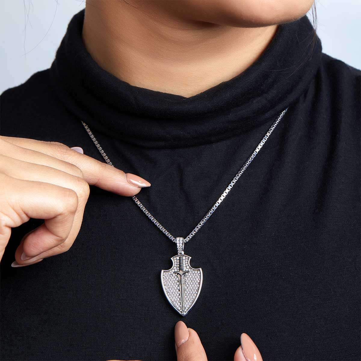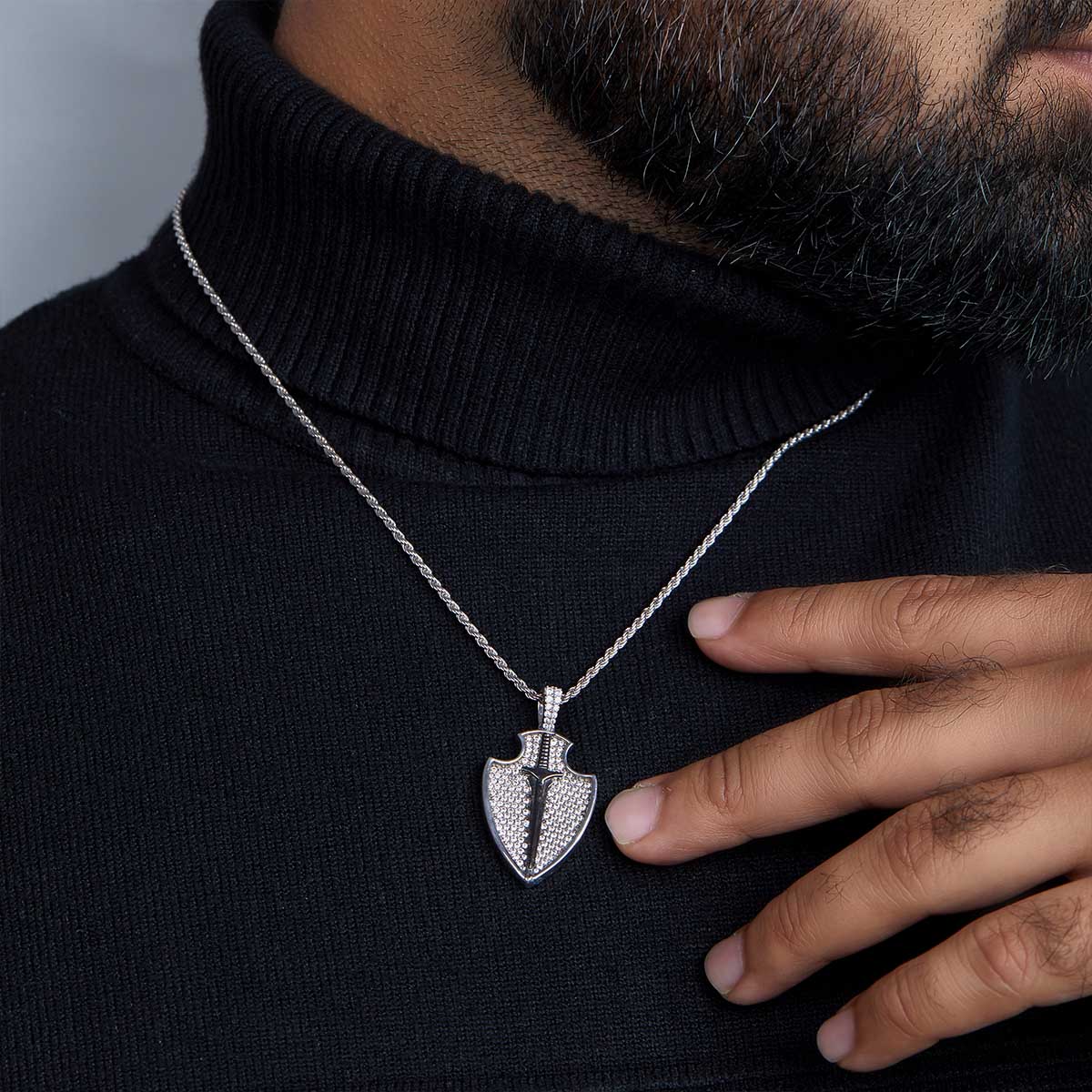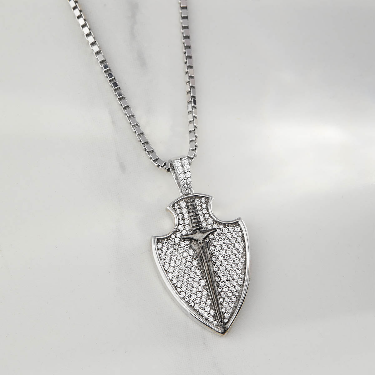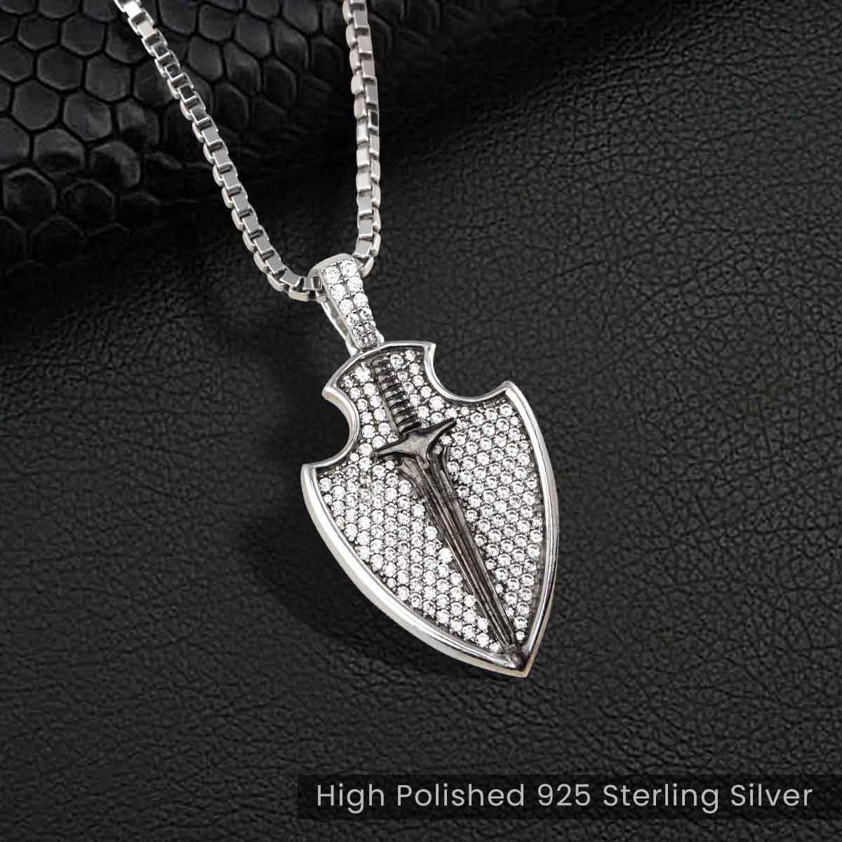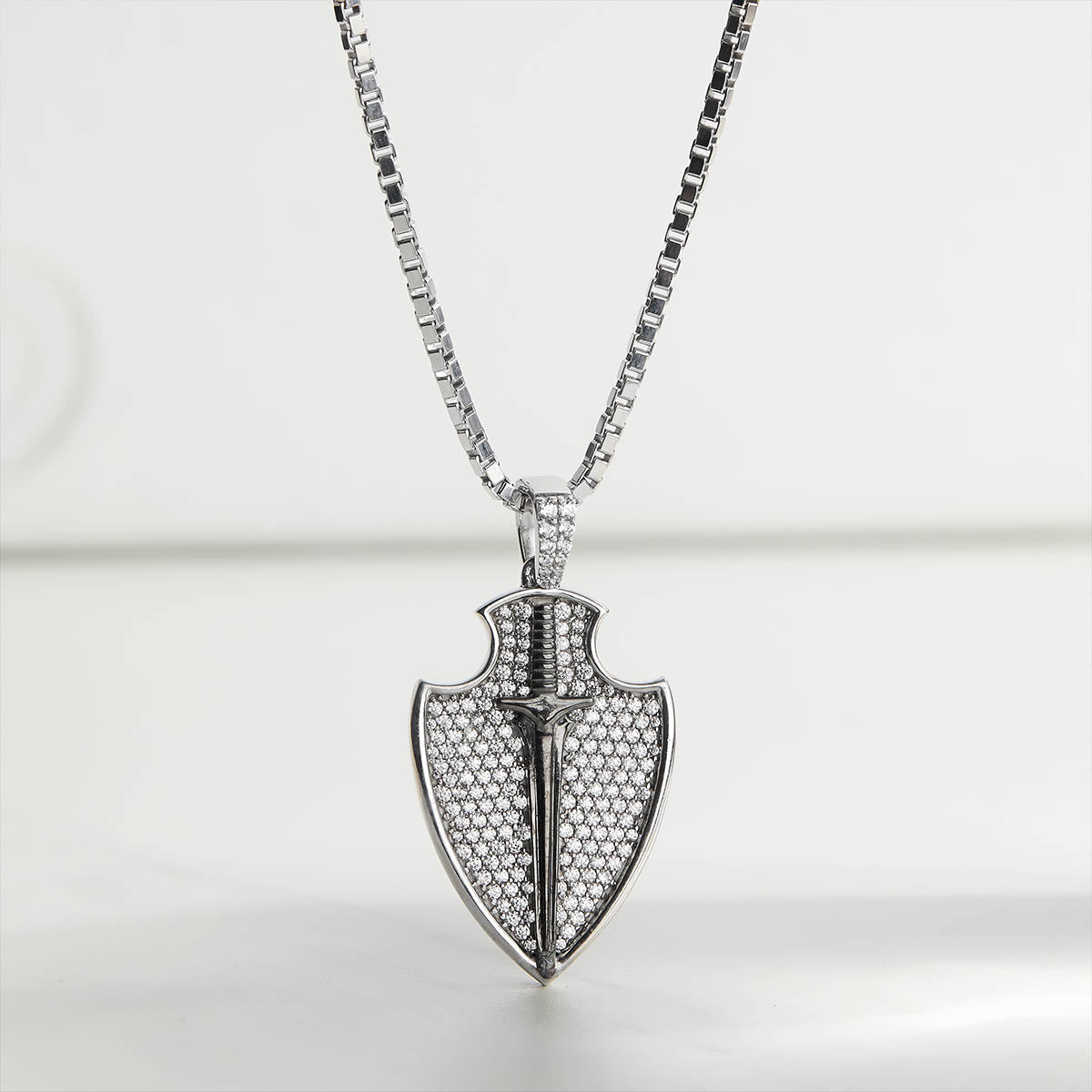 Shield and Sword Viking Necklace Moissanite Iced Out Pendant