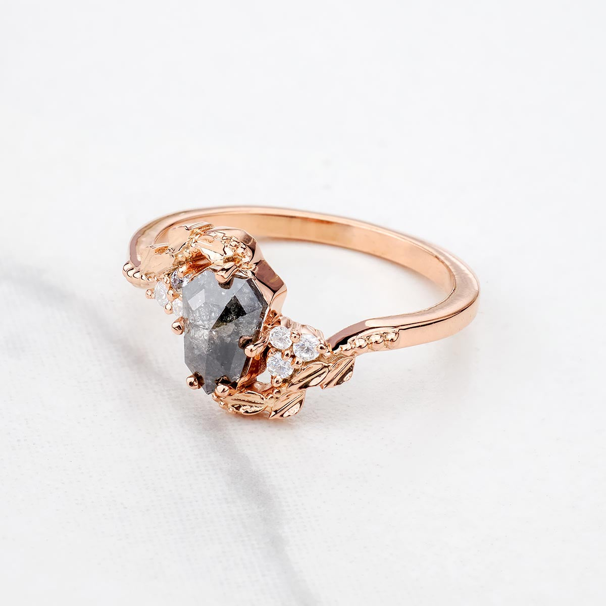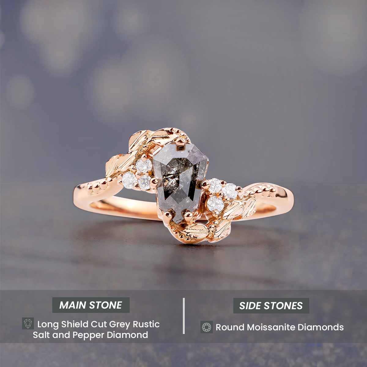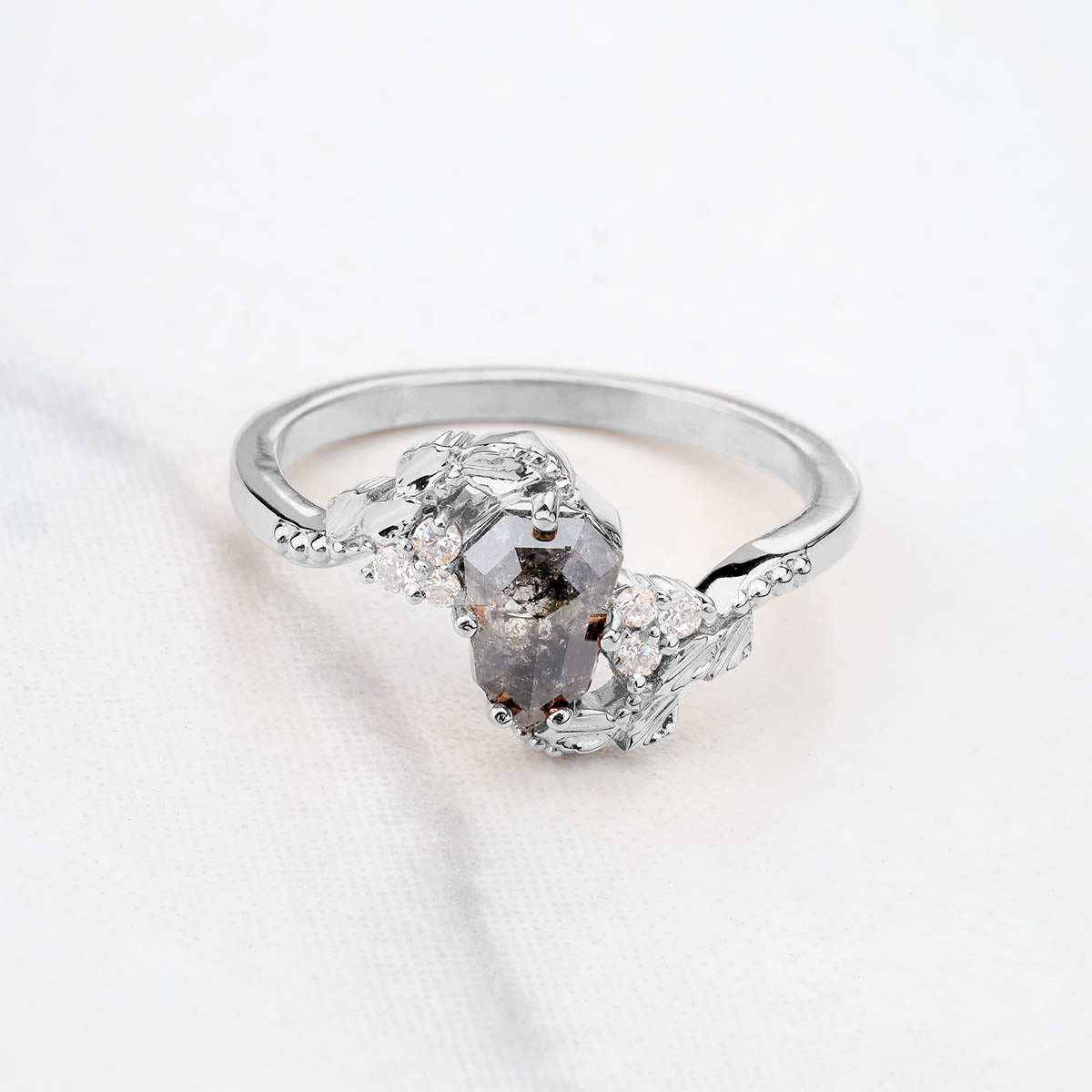 Shield Rose Cut Natural Salt and Pepper Diamond Art Deco Ring