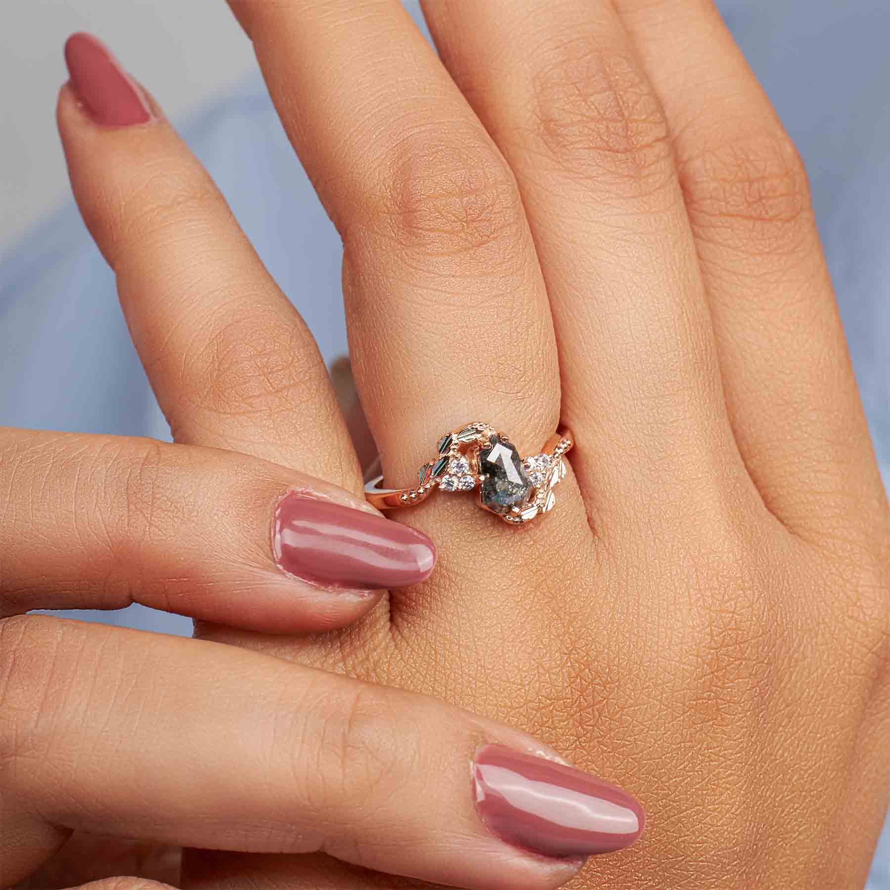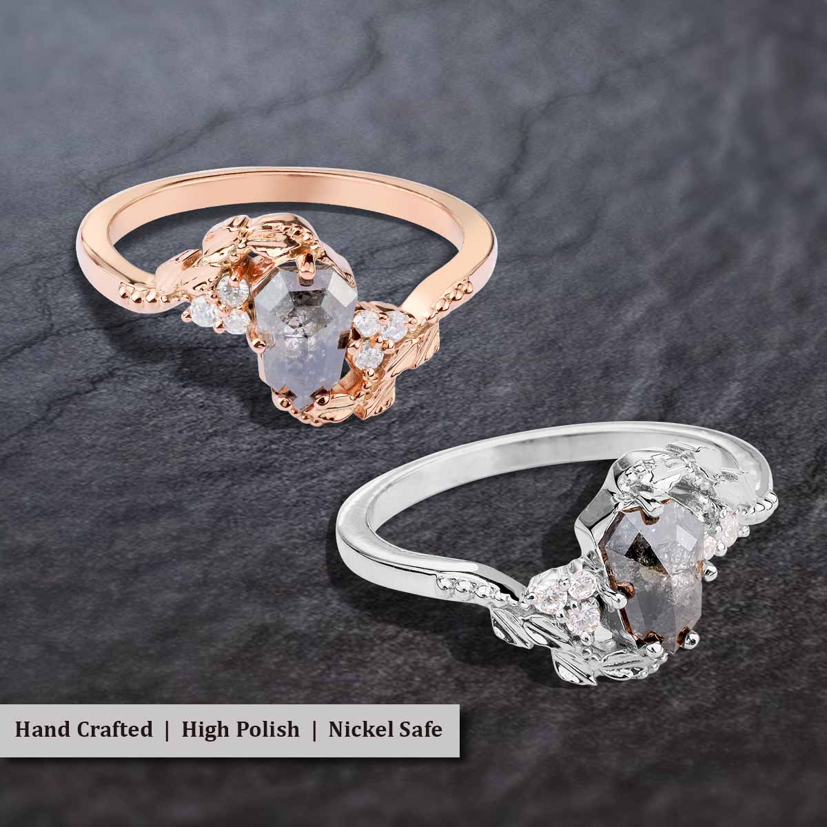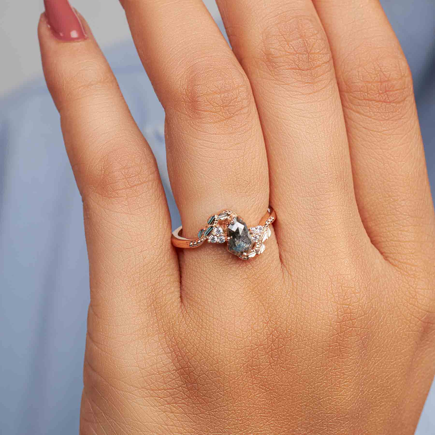 Shield Rose Cut Natural Salt and Pepper Diamond Art Deco Ring
