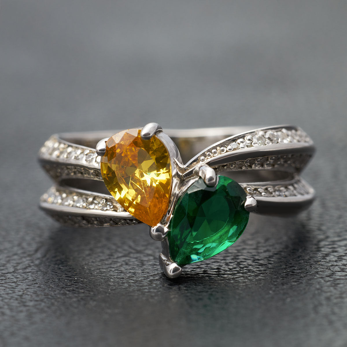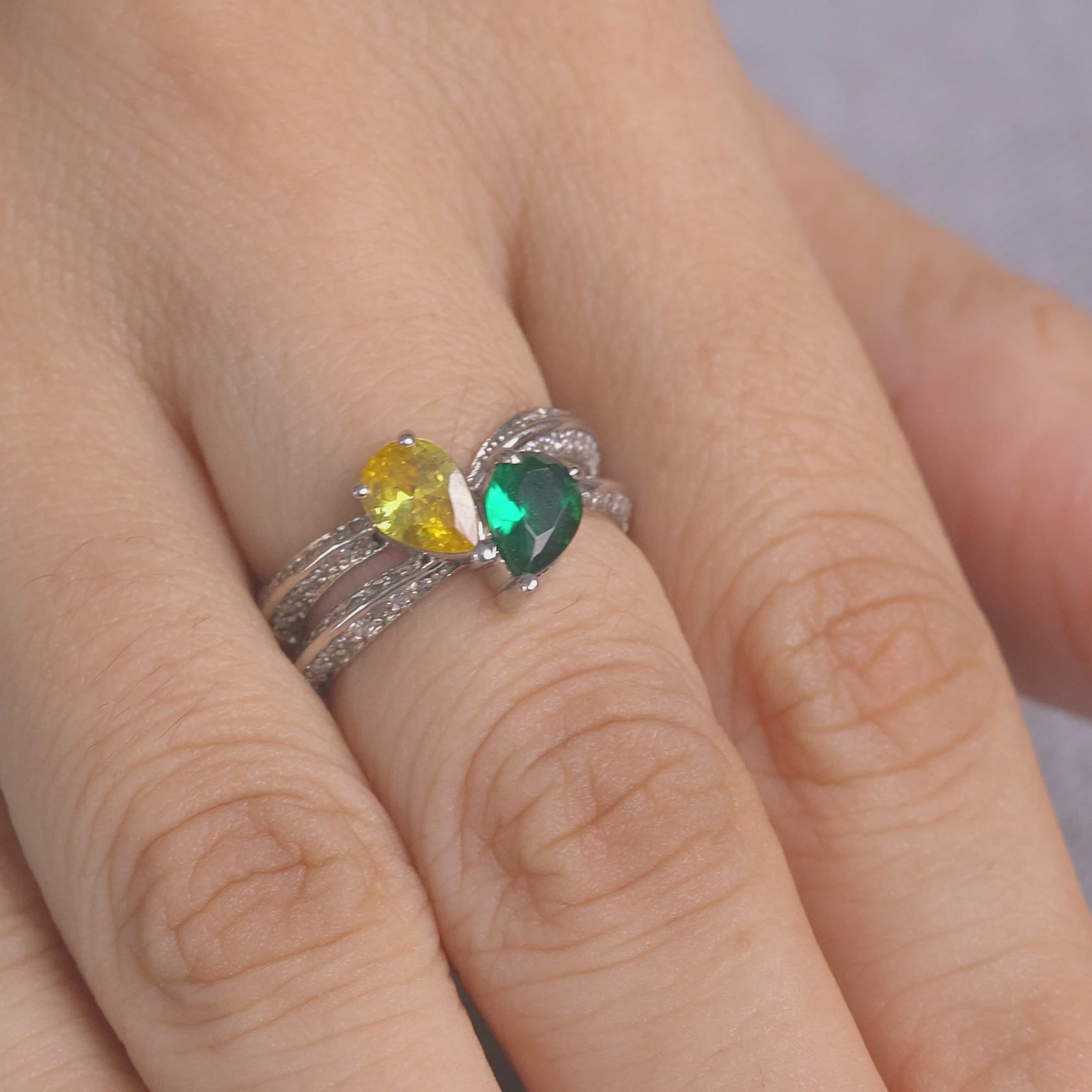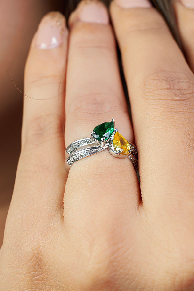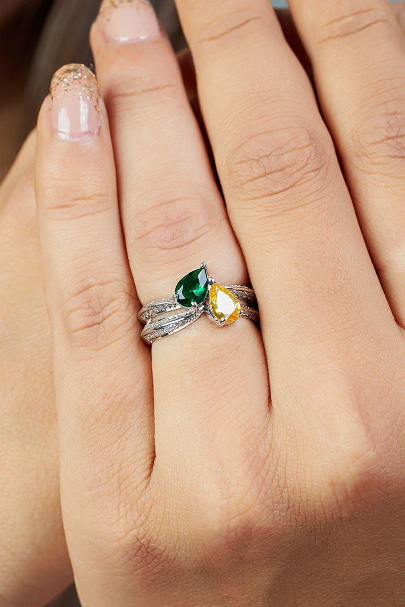 Toi Et Moi Engagement Ring With Birthstones Wedding Ring Silver