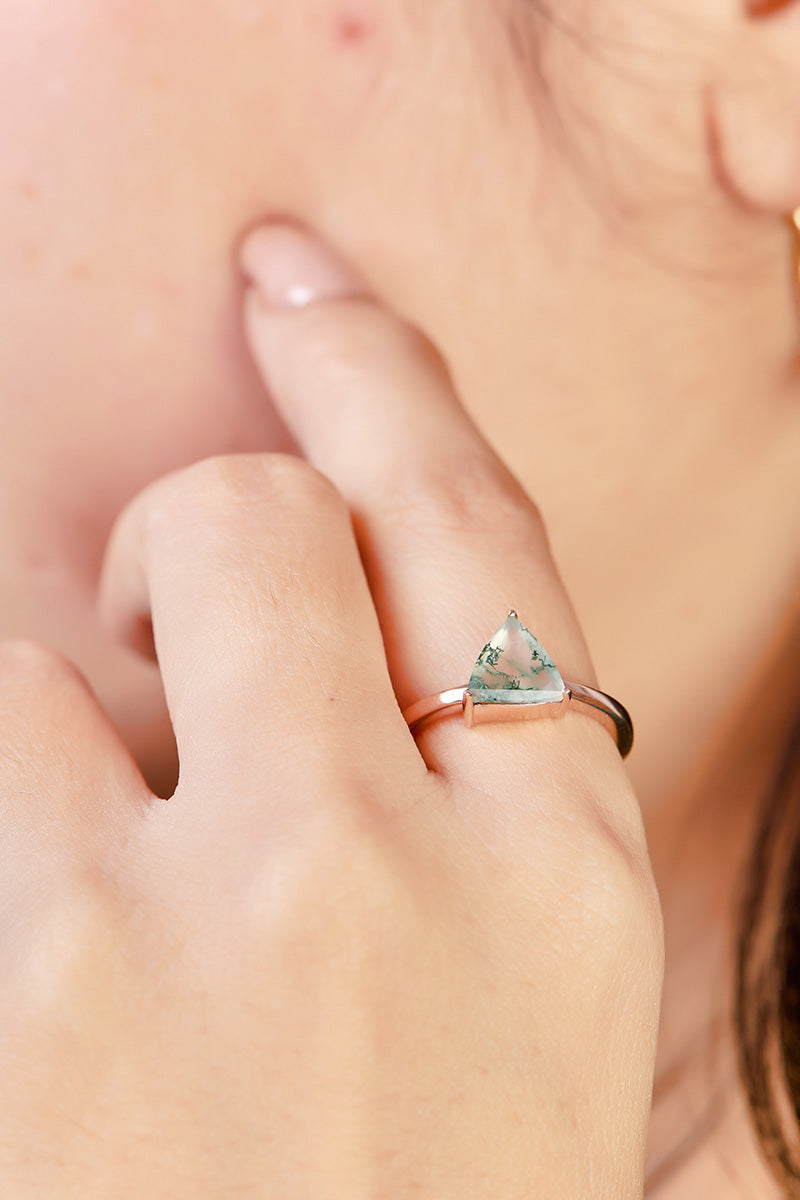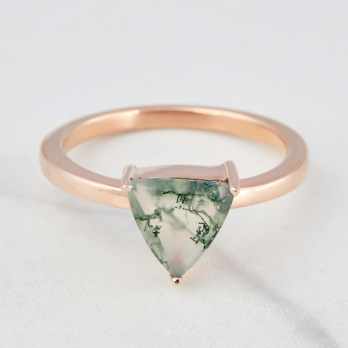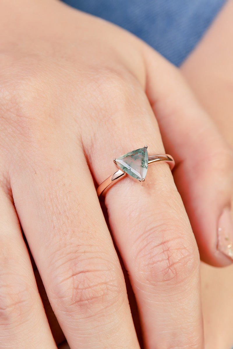 Trillion Cut Moss Agate Engagement Ring Solitaire Moss Rings