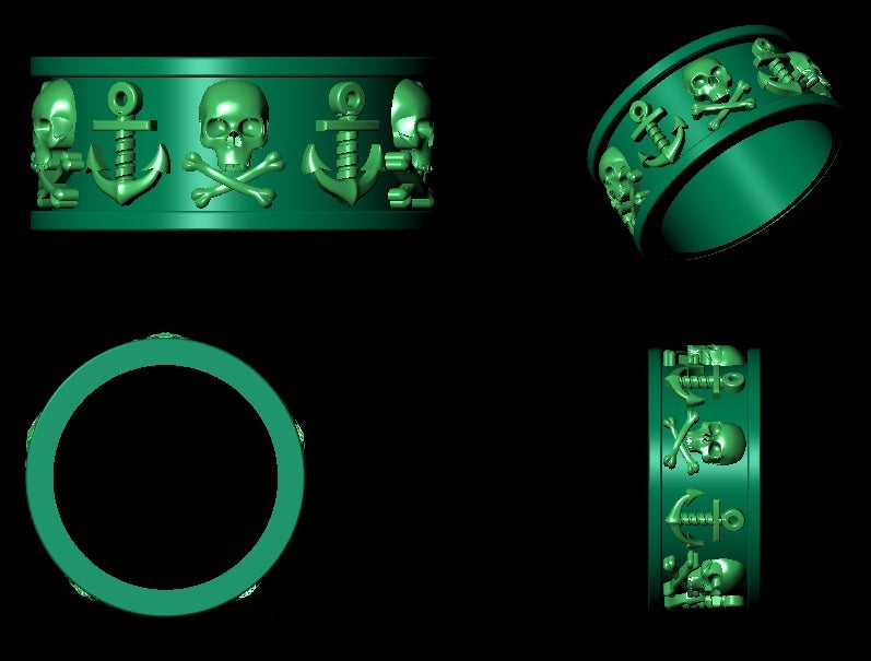 Skull and Anchor Wedding Band Ring 18k White Gold