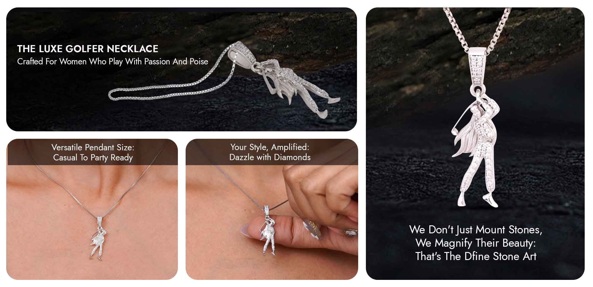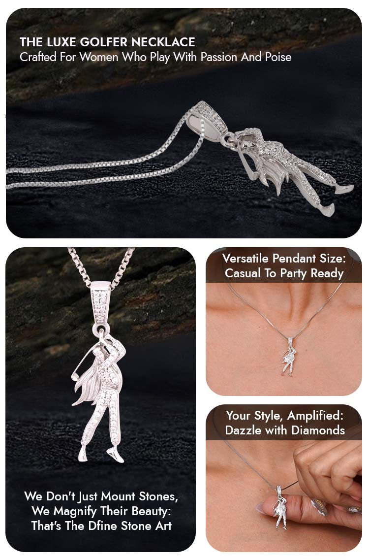 Learn moreFemale Golf Player Necklace Sterling Silver Lady Golfer Pendant Iced Out Sports Jewelry