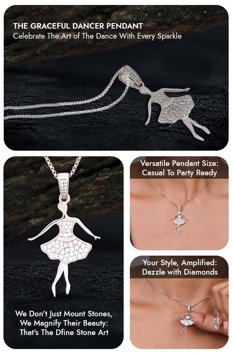 Learn moreMoissanite Ballerina Pendant Necklace Sterling Silver Ballet Dancer Figurine Charm